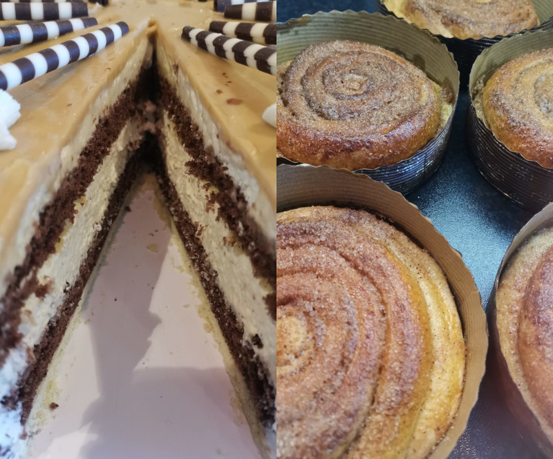 Dieses Wochenende verwöhnen wir Sie mit Mokkasahnetorte und Zimtschnecken (mit und ohne Rosinen).